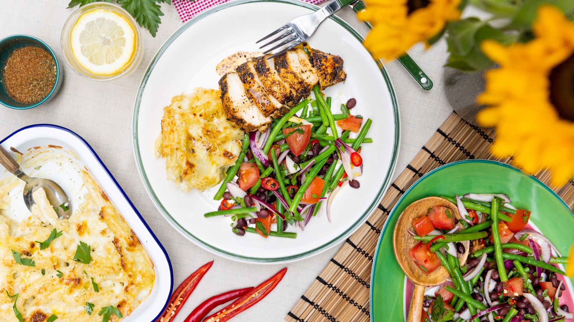 Krydret kylling egner sig perfekt som grillmad, og det gælder især vores smokey chipotle kyllingebryst, der er vendt med chipotle-sauce og paprika, før det grilles til perfektion. Kyllingen serveres med hjemmelavet mac and cheese, der er en yderst populær ret i USA, og som går perfekt som tilbehør til den saftige kylling. Retten serveres også en lækker fyldig bønnesalat.