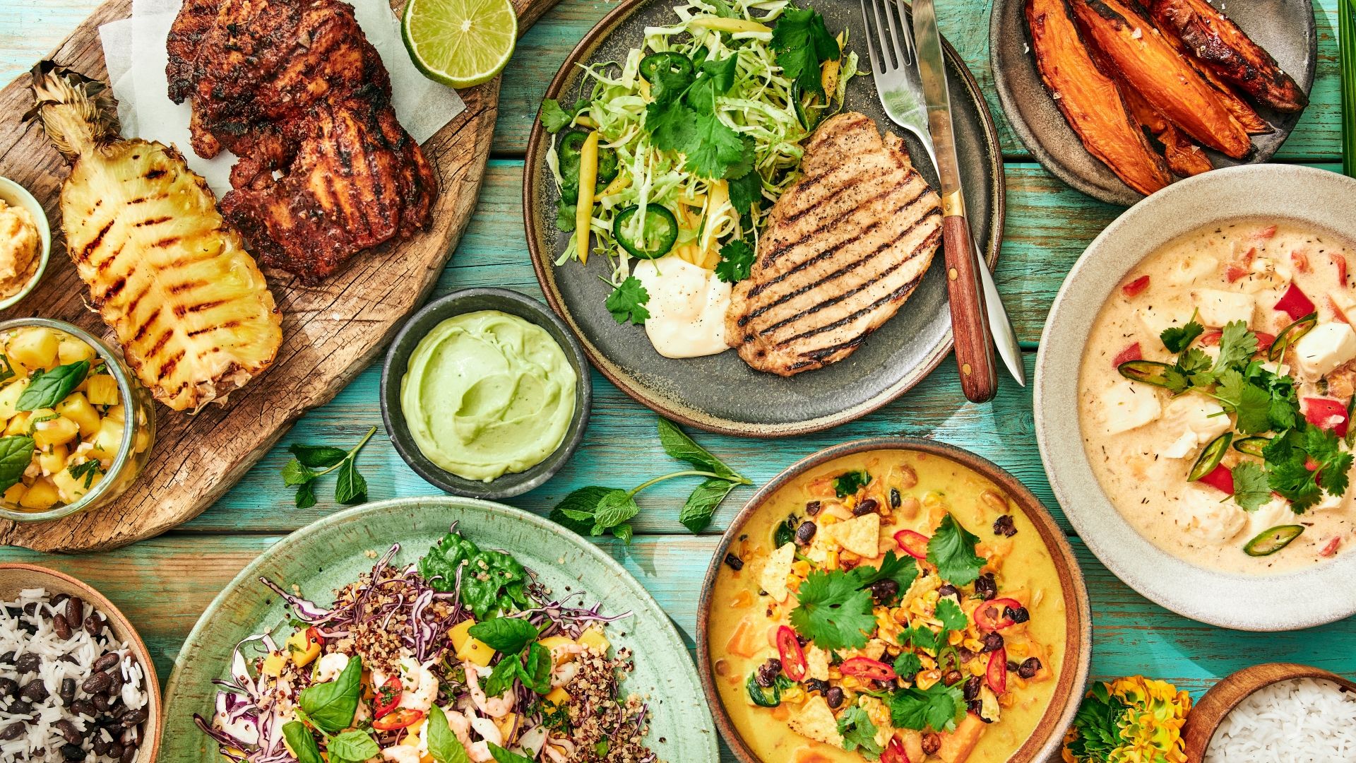 I denne ret har vi hentet inspiration fra en klassisk streetfood-ret i Jamaica: jerk chicken. Her får du en saftig grillet kyllingefilet med en fyldig og røget smag af chili, kanel, ingefær og timian. Kyllingen serveres med ris, bønner, chipotle-lime smør og en lækker ananas-salsa, der giver retten et friskt twist.