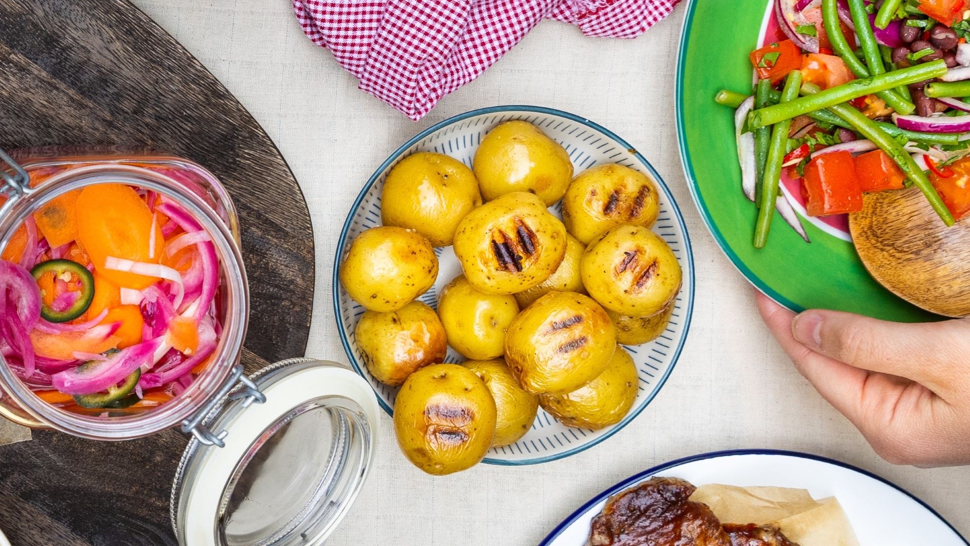 Serveringsforslag: Servér kartoffelsalaten som tilbehør til BBQ-glaserede koteletter med grøn chili og majssalat.