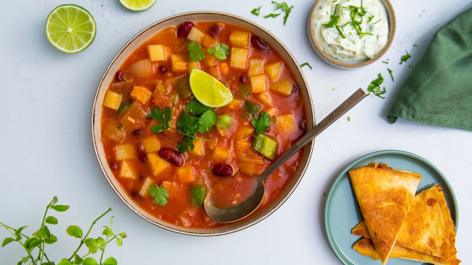 - Chilensk bønnesuppe med koriandermayo og quesadillas