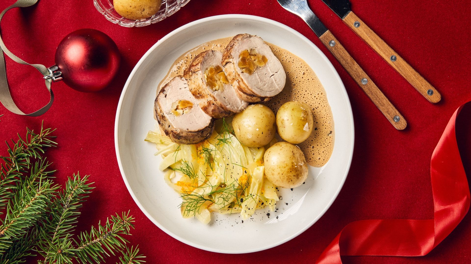 Leder du efter noget særligt til julemiddagen? Imponér dine gæster med vores fyldte svinemørbrad, der kombinerer søde abrikoser og æbler for en perfekt balance mellem det søde og salte. Serveret med kartofler, velsmagende sovs og appelsinglaseret fennikel får denne ret en frisk og eksotisk twist, der fulender retten.