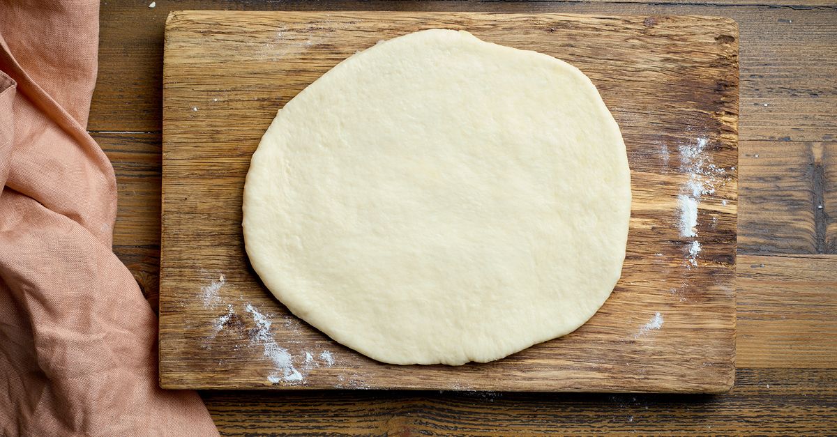 - Når du skal forme pizzaerne, så lad kagerullen ligge i skuffen! Tryk hver kugle ud til runde pizzaer på en meldrysset overflade. Start fra midten og arbejd dig udad.