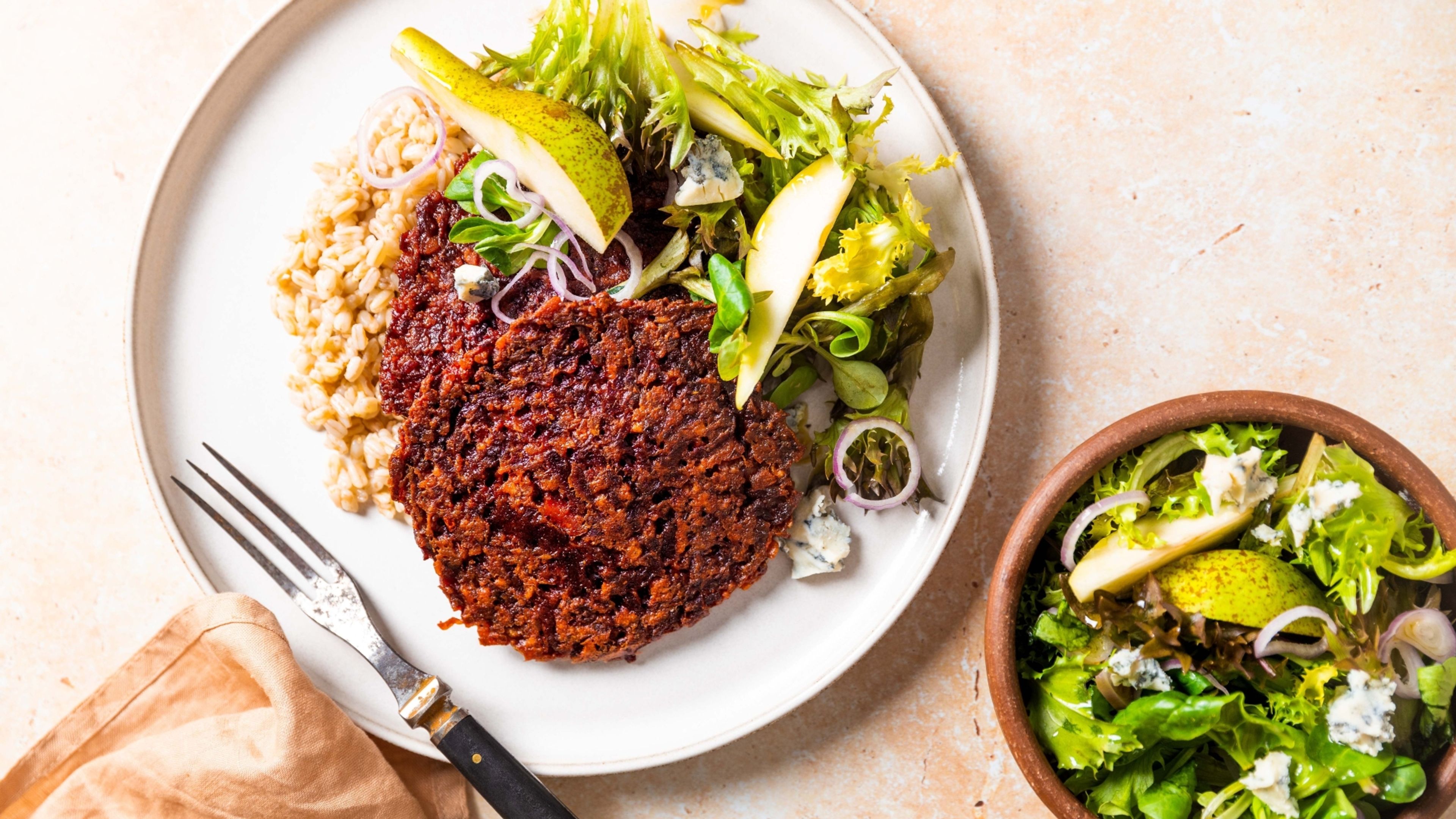 - Rødbedebøf med kartoffelpuré og pæresalat